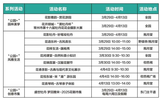本届花会以“公园+园林美学”、“公园+风雅生活”、“公园+创意市集”为核心,以牡丹为媒介,开展三大版块共十一项活动,让游客“沉醉至美国色,徜徉人文雅艺”,享受诗意生活。
