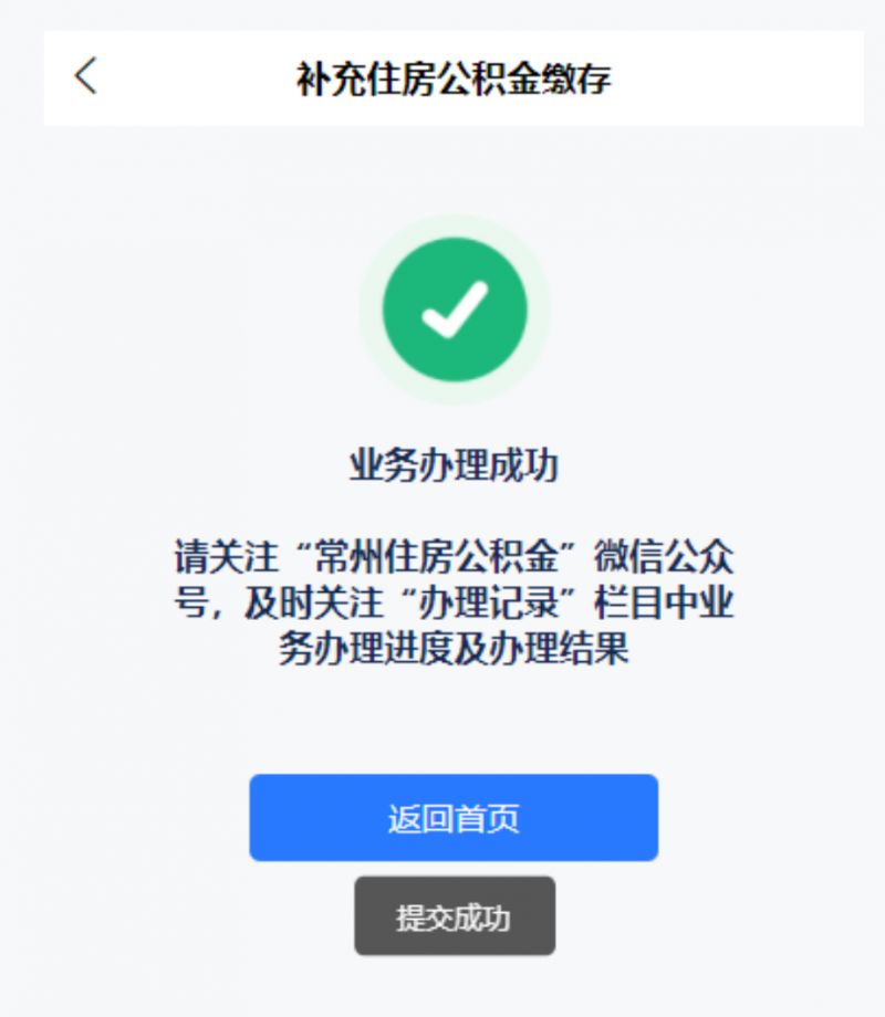 (2)显示“业务办理成功”后,补充住房公积金缴存业务就完成了。