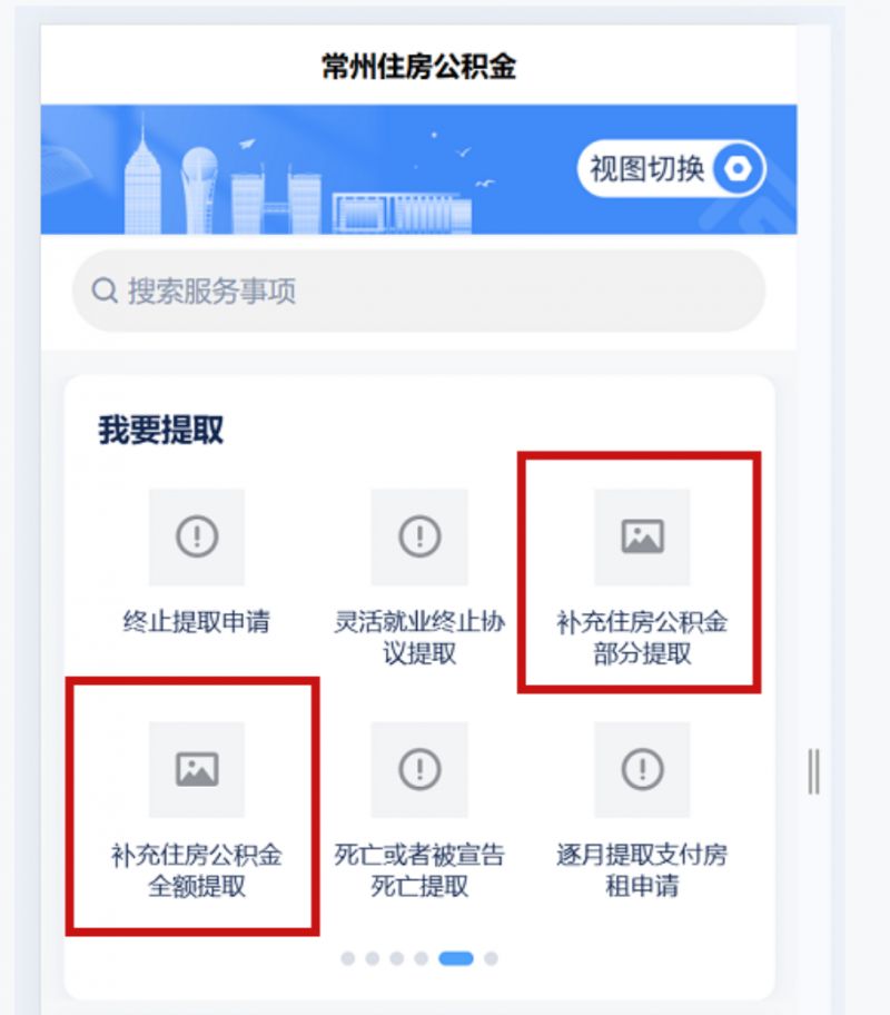 (1)已经办理线上业务签约的往房公积金缴存人登录常州住房公积金微信公众号,进入服务大厅我要提取界面,选择"补充住房公积金部分提取业务或者"补充住房公积金全额提取"业务。