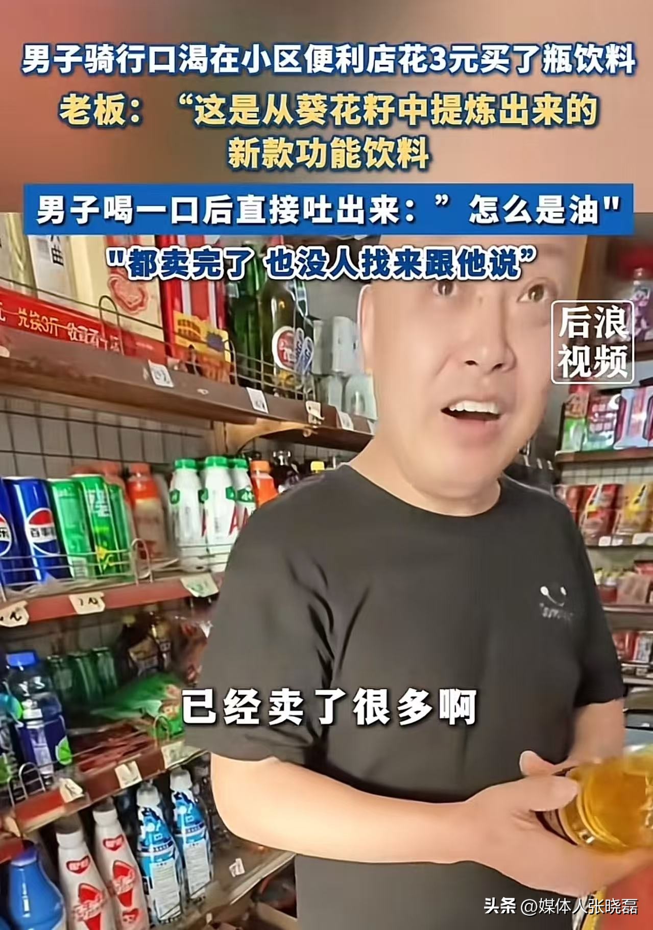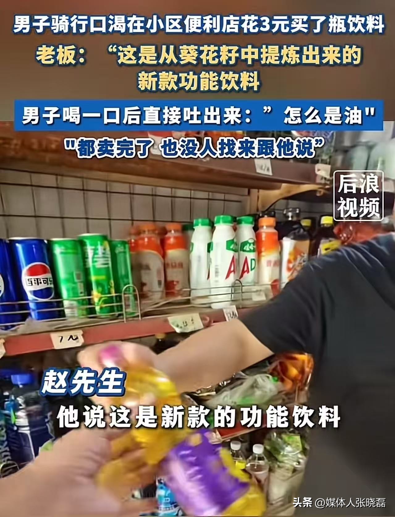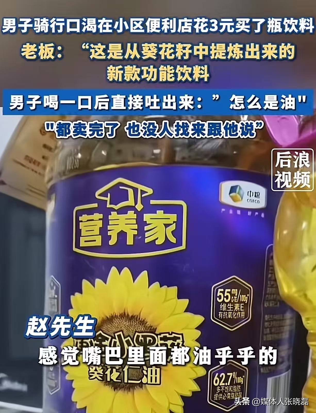 笑不活了!江苏常州,男子在便利店花3元买了瓶饮料,喝一口直接吐出来,里面装的居然是油!可是他找老板反映,老板还坚持说不可能,他一箱都卖完了,都没人说是油。可是老板仔细看了看瓶子,沉默了!网友:3 元买食用油怎么都是赚的,肯定不会过来找的!