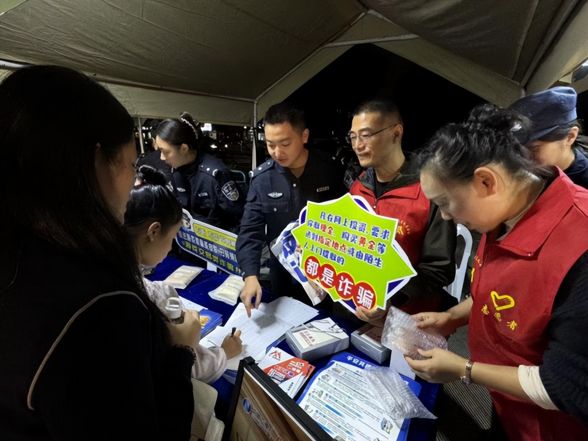 “各位街坊,先别急着等演出,咱们先来学知识、赢礼品!”湖塘见义勇为工作站的工作人员和志愿者们的热情吆喝,瞬间聚拢了大批群众。宣传摊位前,工作人员拿着案例手册,用通俗易懂的语言拆解着电信诈骗的“套路”:“有人打电话说你涉嫌犯罪要转账?千万别信!这就是冒充公检法的骗局!”从网络刷单的“小利陷阱”到虚假投资的“暴富谎言”,一个个真实案例听得群众频频点头,不少人掏出手机拍照记录,主动追问防范细节,互动声、咨询声此起彼伏。